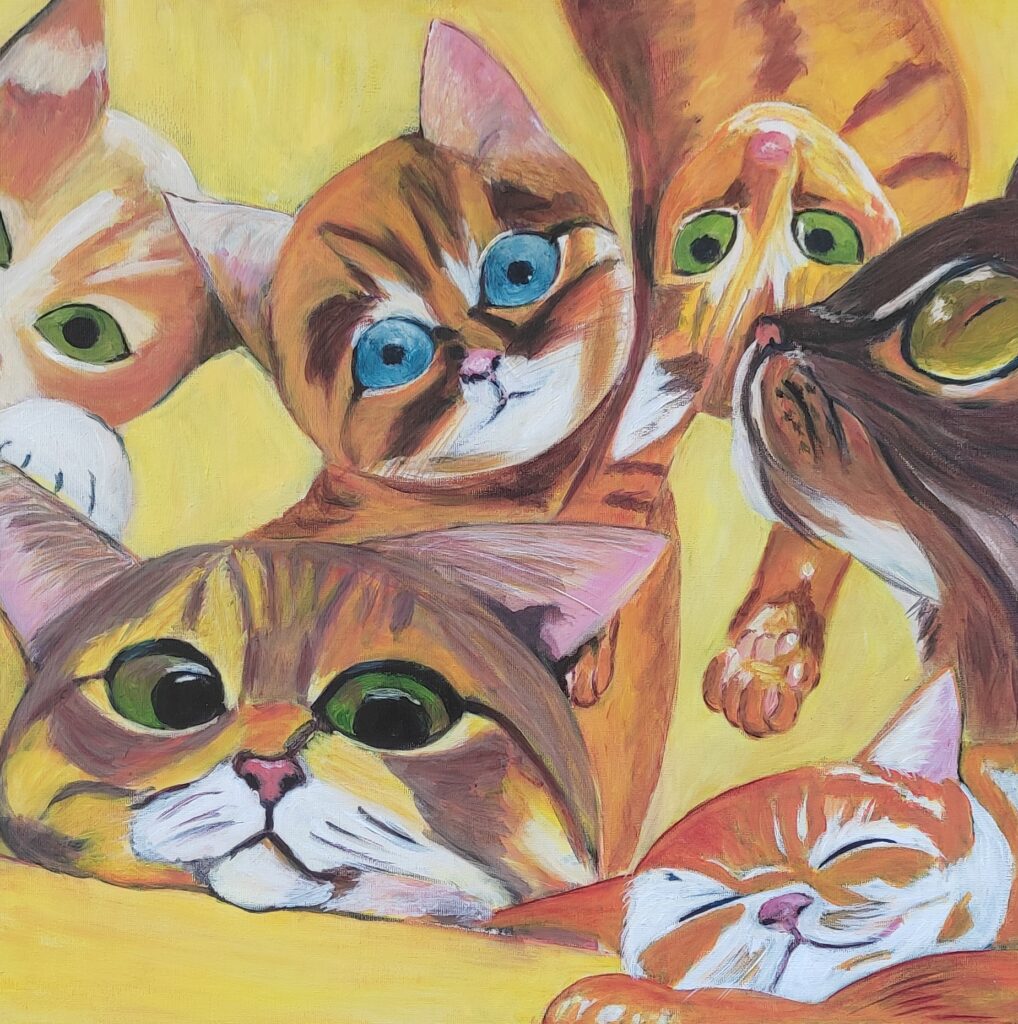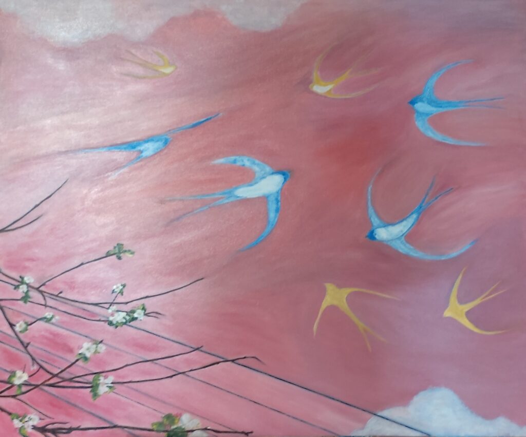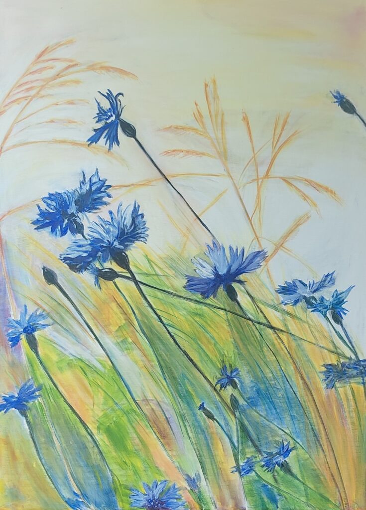 Díky opětovnému propojení se svou duší, která opravdu ráda maluje, jsem se však rozhodla začít chodit do kurzu malování a dál se vzdělávat. V ateliéru jsem objevovala své možnosti, zkoušela různé techniky a postupně nacházela svůj vlastní směr – malovat ve volnosti.