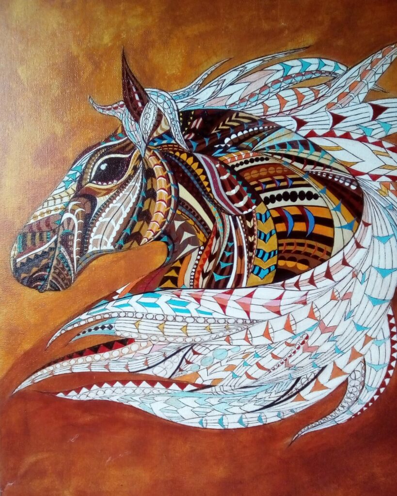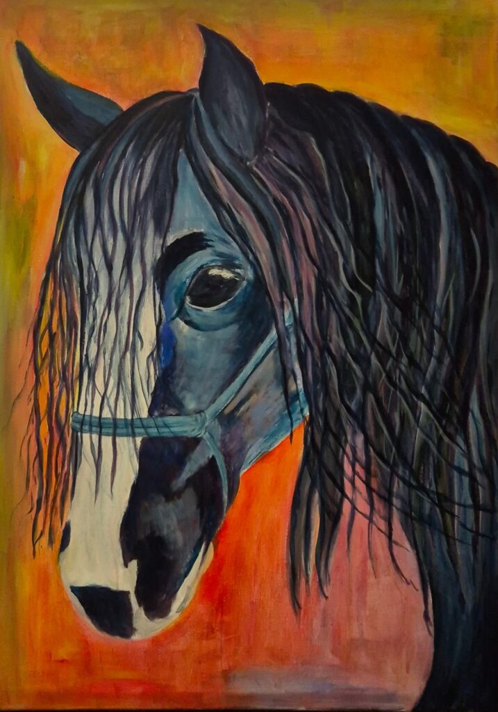 LÉTAJÍCÍ KŮŇ akryl 50×70 3000Kč